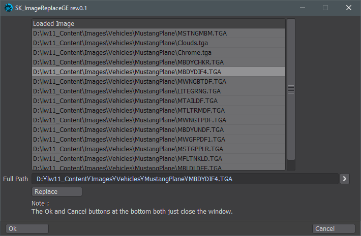 シーンにロードされているイメージをフルパスで表示し、ファイルを置き換えることができます。