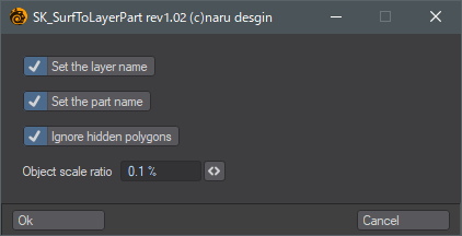 CADから出力したobjファイルなどレイヤー構造が無いデータの場合、サーフェイス名で部品を分けていることがあります。このスクリプトを使用すればポリゴンを自動的に部品単位でレイヤー分けすることができます。